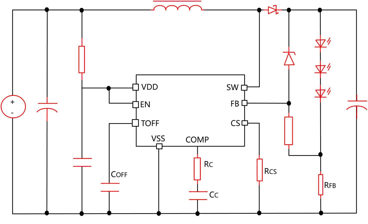 RCS≤0.2/(VOUT*ILED/(η*VIN)+(VOUT-VIN)*TOFF/(2L))